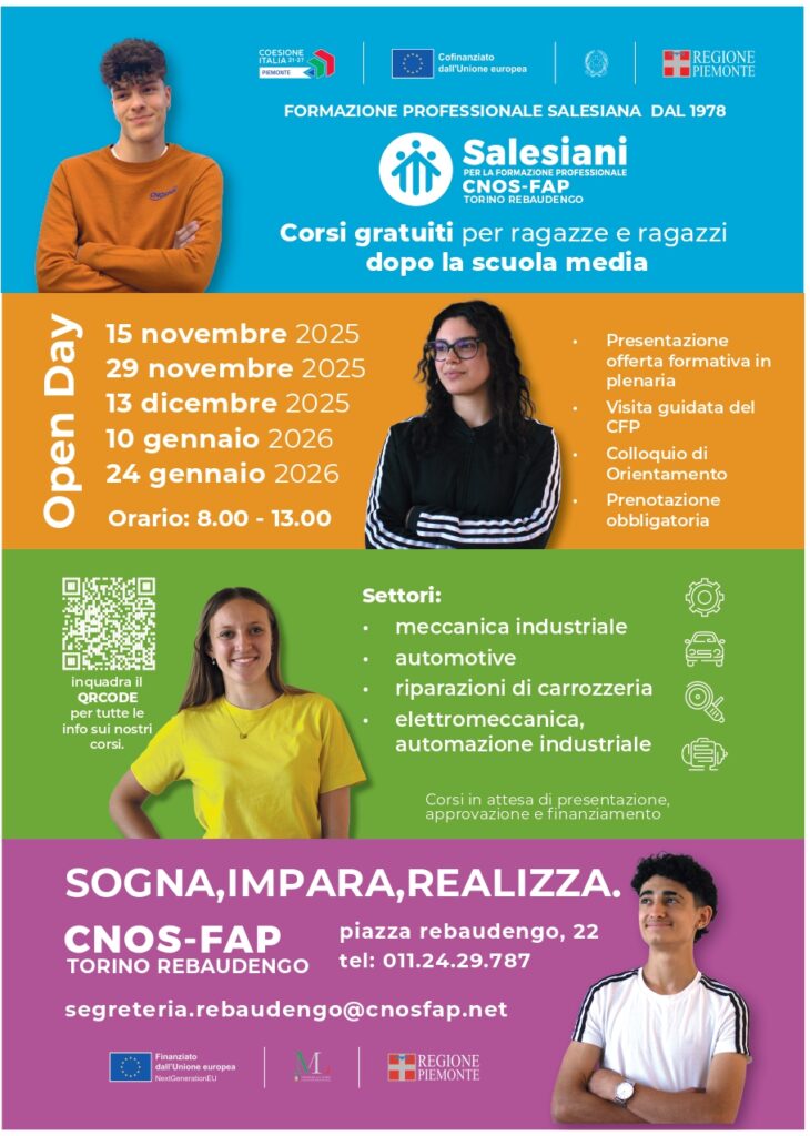Anche quest’anno tornano, per tutti i ragazzi e le ragazze in uscita dalla 3°media, gli appuntamenti con gli Open Day, le giornate in cui le aule e i lavoratori del CFP Rebaudengo sono a disposizione per le famiglie che vogliono scoprire il nostro modo di fare formazione.