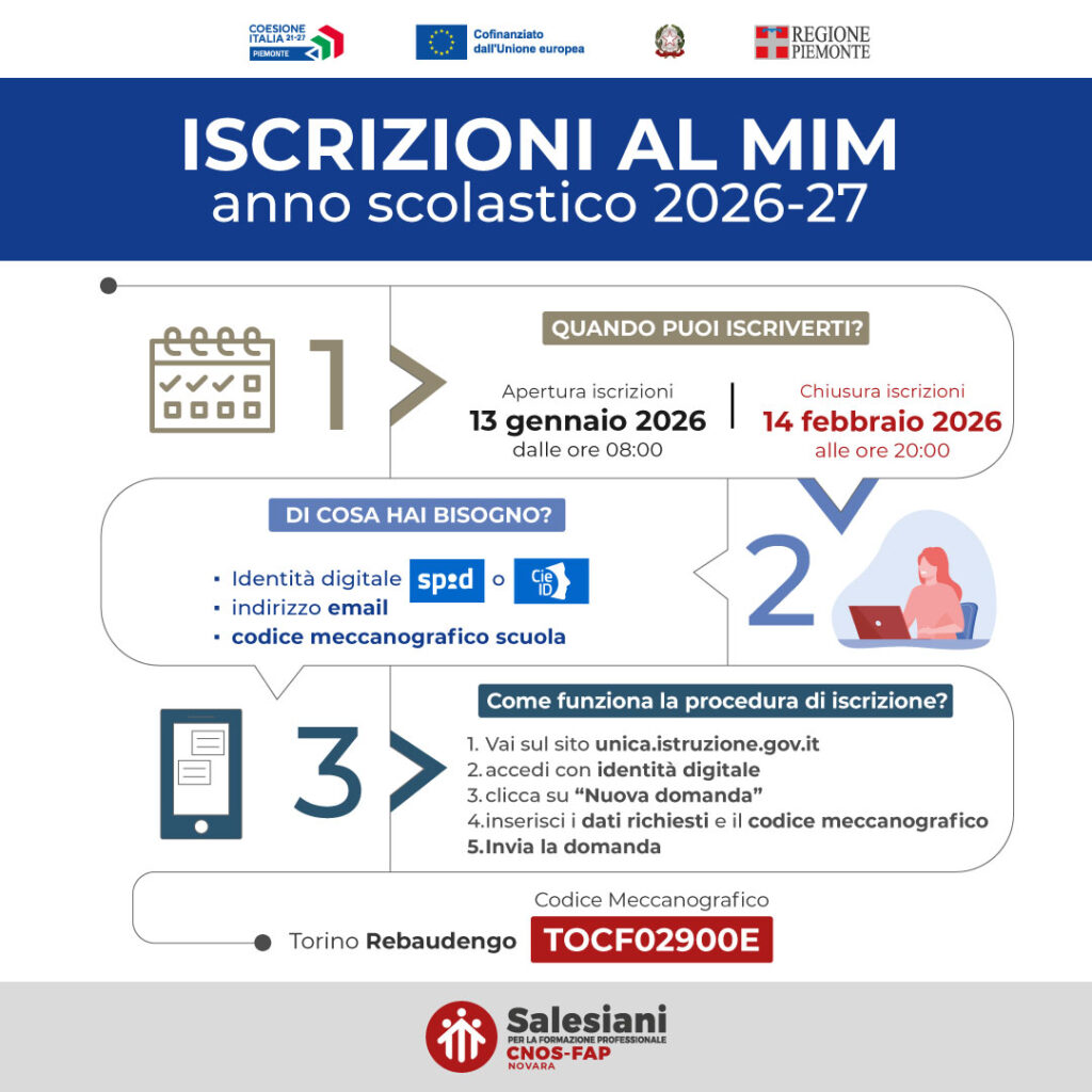 Nella scelta del CNOS-FAP Rebaudengo ricorda anche di indicare il codice meccanografico del nostro CFP: TOCF02900E